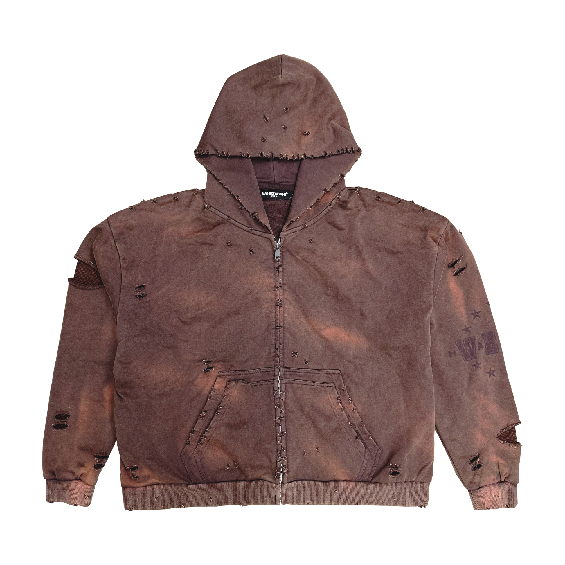 DISTRESSED THROUGHOUT WITH EXPOSED THERMAL SLEEVE LAYERING